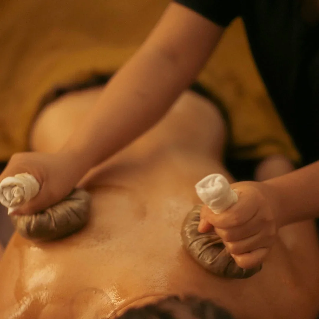release mental fatigue, emotional tension + stress with calming Ayurvedic massage rooted in traditional Indian healing practices, this treatment uses warm, herbal oils and precise marma point therapy to unlock blocked energy, ease muscular tightness, and support clarity of mind.